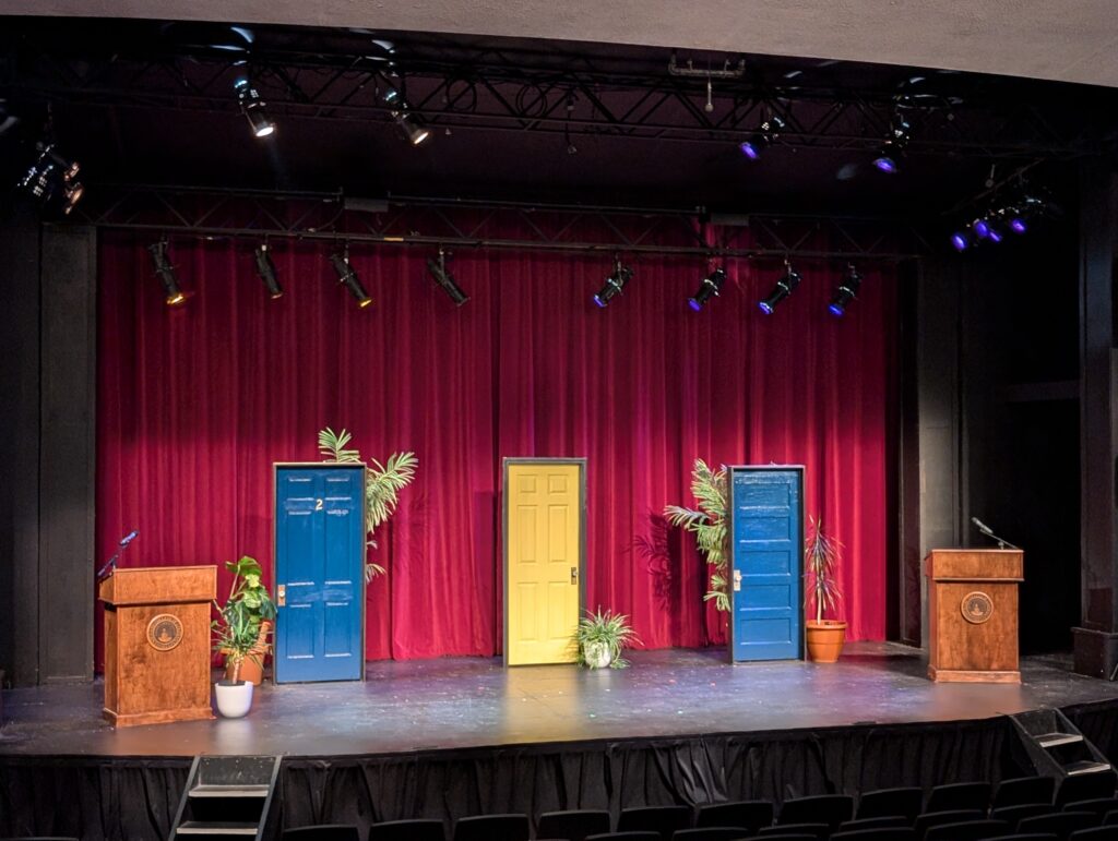 This stage design was for the presentation of a literary award in the Marjorie Lyons Playhouse at Centenary College. The three doors on stage are in reference to the many stories in The Ones Who Don’t Say They Love You by the author that received the award, Maurice Carlos Ruffin, and the colors are inspired by the cover of the book. The scenic design was inspired by row houses in New Orleans, where many of Ruffin’s stories take place.
